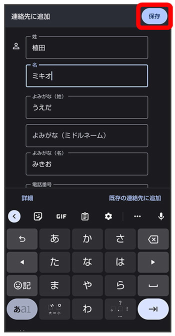 - 追加したい連絡先を入力表示された連絡先をタップと操作すると、既存の連絡先へ追加することができます。
