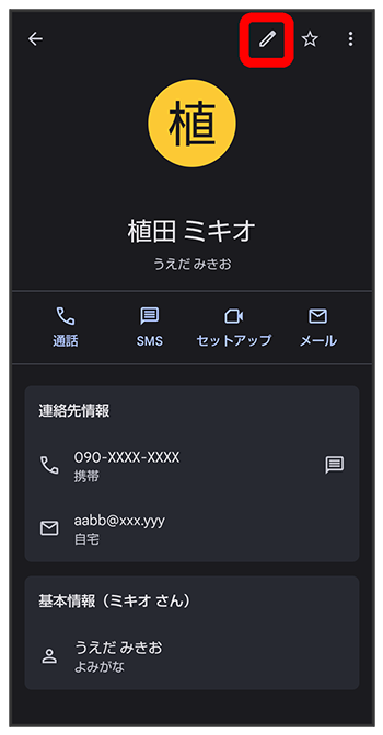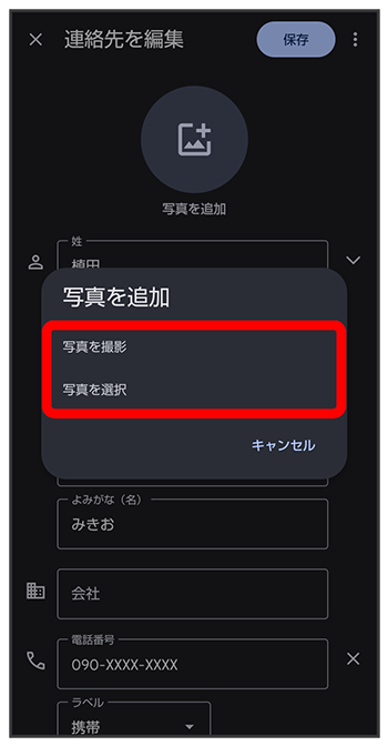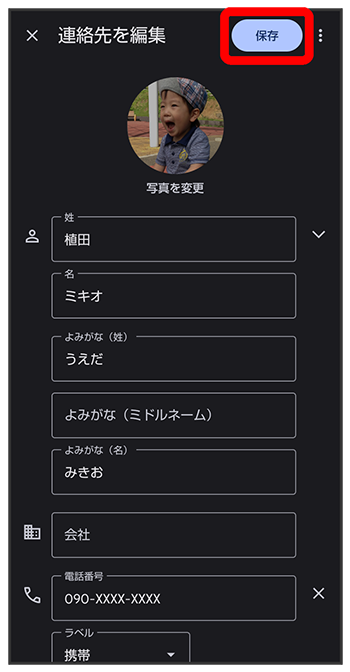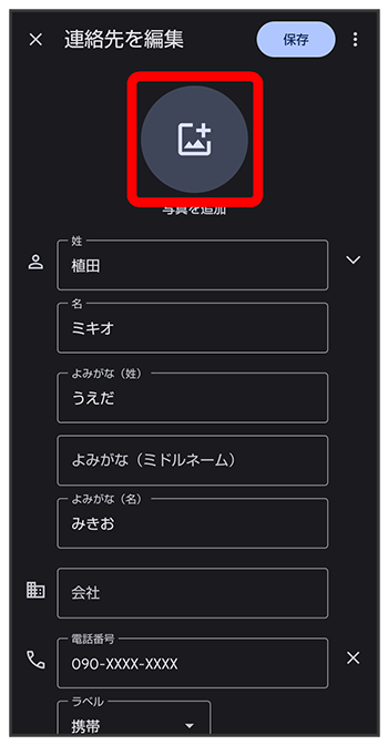 - 連絡先に画像が設定されている場合は、設定されている画像またはをタップすると/と表示されます。をタップすると、画像を削除することができます。