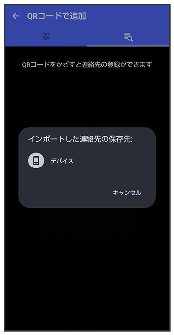 相手機器でQRコードを表示QRコードを画面中央に表示