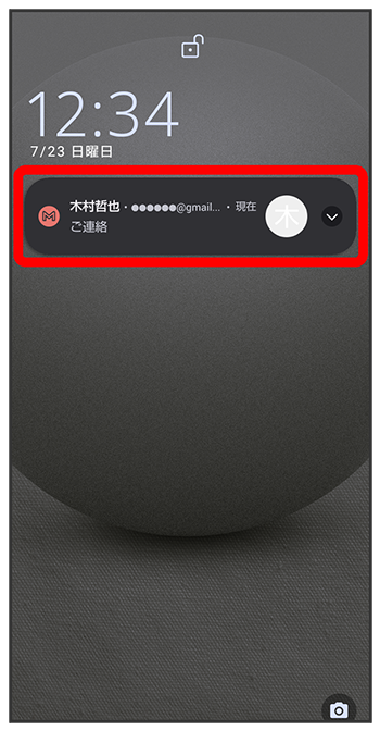 新着メールを受信すると、ロック画面に新着メッセージ通知が表示されます。
