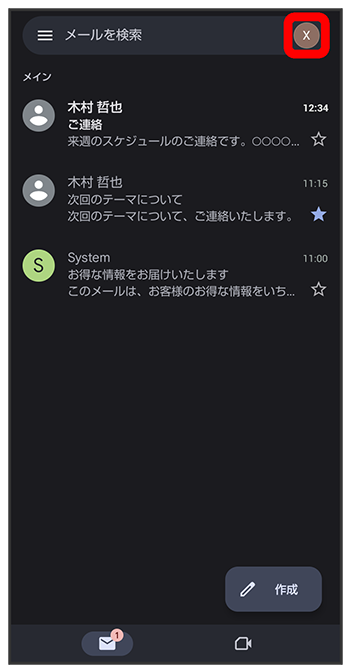 メール一覧画面が表示されます。