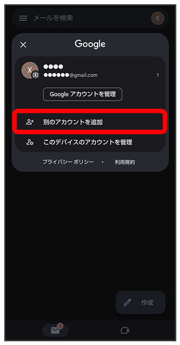 ここでは、Google アカウントを追加する方法を例に説明します。