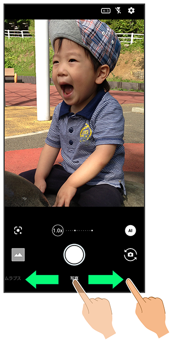 - 写真撮影画面の操作について詳しくは、「写真撮影画面(アウトカメラ/インカメラ)の見かた」を参照してください。