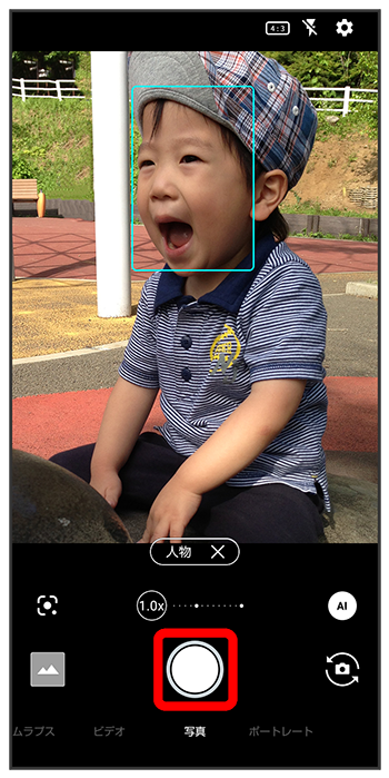 - 画面下部の撮影モードを左右にドラッグしてを選択すると、被写体の顔にピントを合わせ、背景をぼかした写真を撮ることができます。