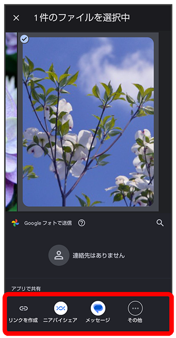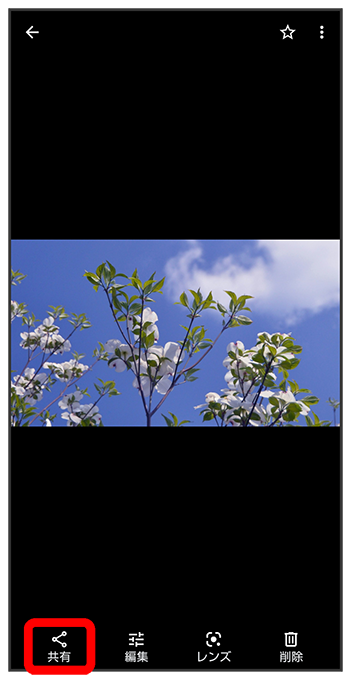 フォト画面で対象の写真/動画をロングタッチ(