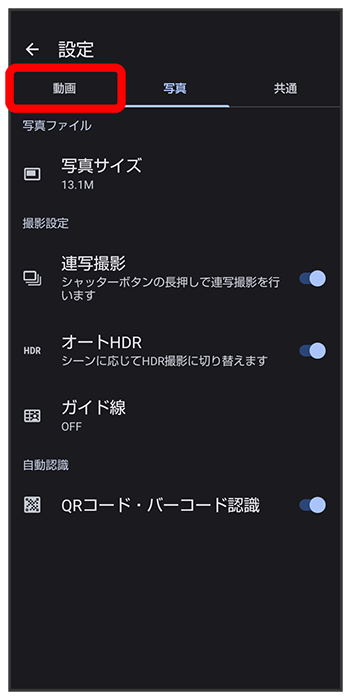 | 画質とデータ量 | 動画の画質とデータ量を切り替えます。 |