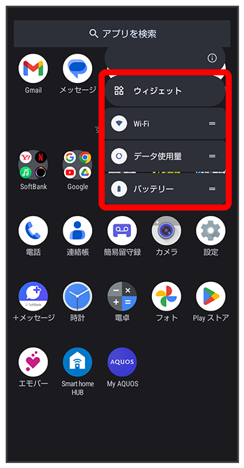 アプリをロングタッチすると、アプリにより機能へのショートカットが表示される場合があります。機能ショートカットをタップすると、その機能を直接起動できます。