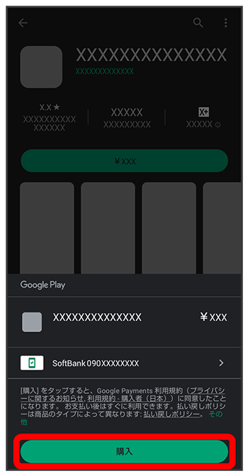 Google Play画面でアプリの購入について