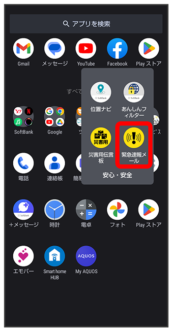 ホーム画面を上にフリック緊急速報メールを利用するかどうかを設定する