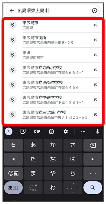 住所や都市、施設名などを入力選択候補から住所や都市、施設名などをタップ