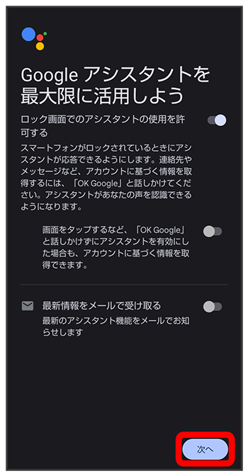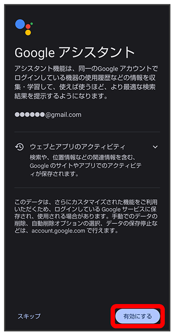 Google アシスタント機能がONに設定されます。