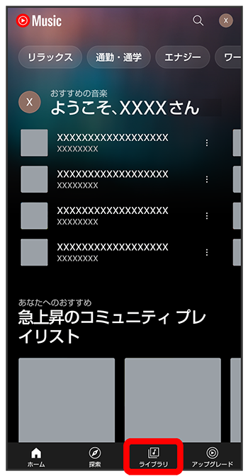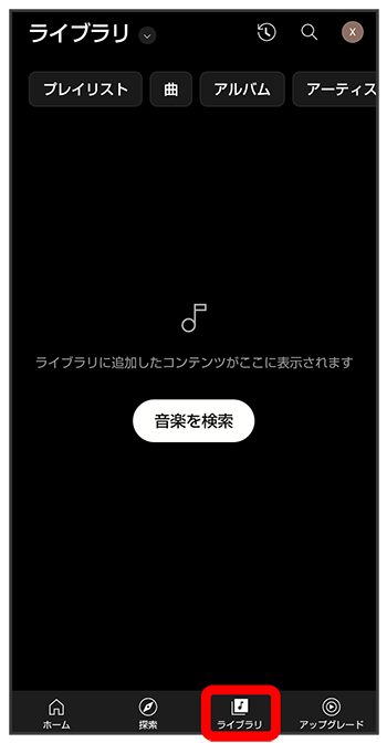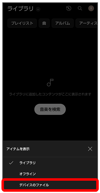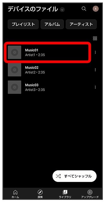 - /などをタップすると、曲がカテゴリーごとに表示されます。カテゴリーごとに表示しているときは、項目をタップ/再生する曲をタップと操作してください。