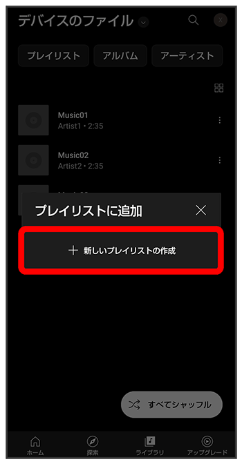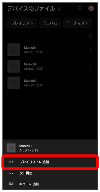 - 曲をカテゴリーごとに表示しているときは、アルバム名/アーティスト名などをタップする必要があります。