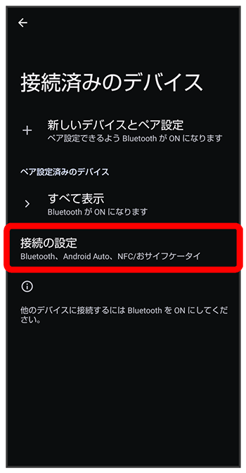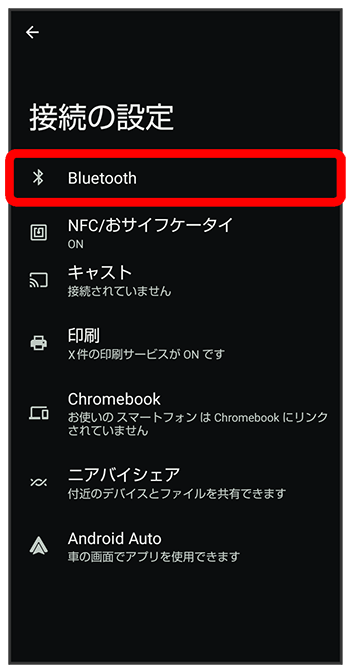 機内モードを設定していませんか。Bluetooth®機能を有効にした状態で機内モードを設定すると、いったん、Bluetooth®機能は無効になります。