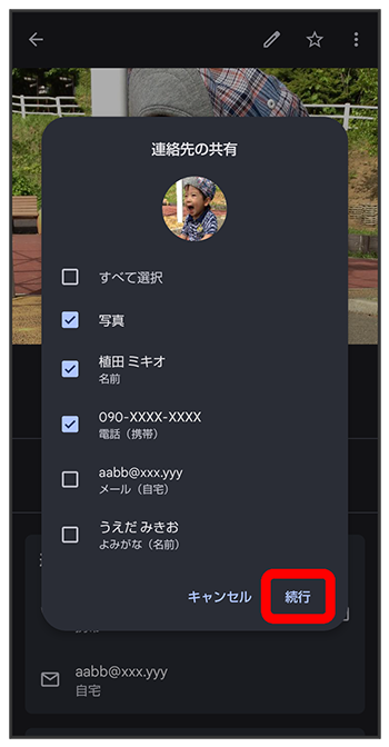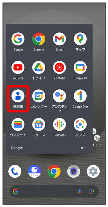 連絡帳画面で連絡先をロングタッチ送信したい連絡先をタップ(