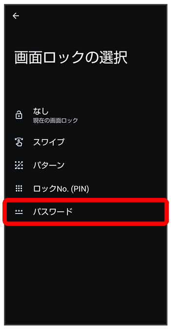 パスワードで画面ロックを解除するように設定する