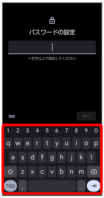 - をタップすると、入力したパスワードを消去できます。