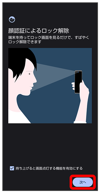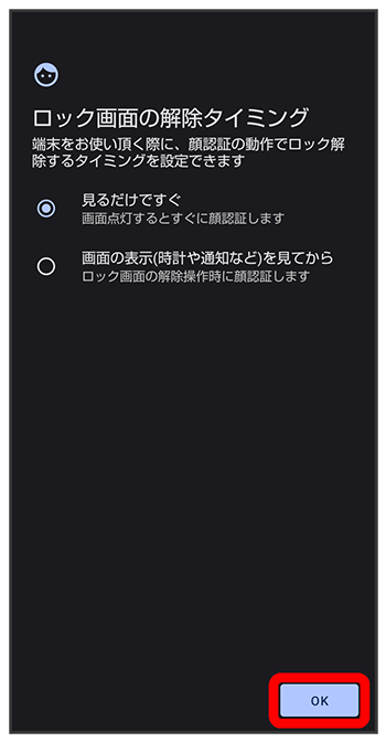 顔データの登録後に画面ロックを解除するタイミングを変更する