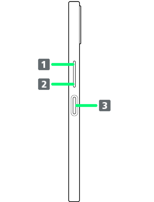 | 電源キー1 | 画面を消灯/点灯します。長押しすると、電源を入れたり、Google アシスタント™を起動できます。2 |