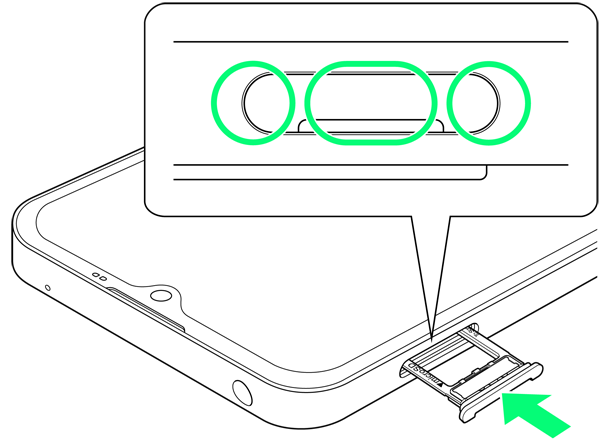 SIM/SDカード挿入口に、カードトレイを差し込む