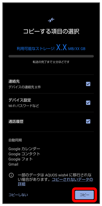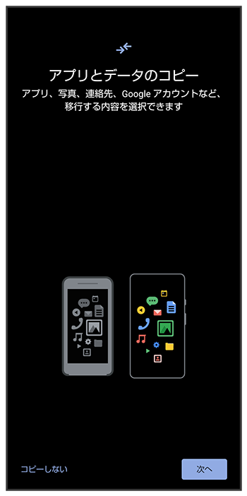 - ほかの端末などからデータをコピーしないときは、をタップします。