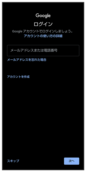 - Google アカウントについて詳しくは、「Google アカウントを設定する」を参照してください。