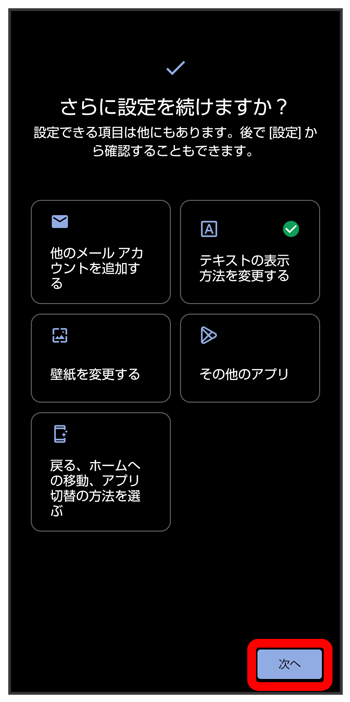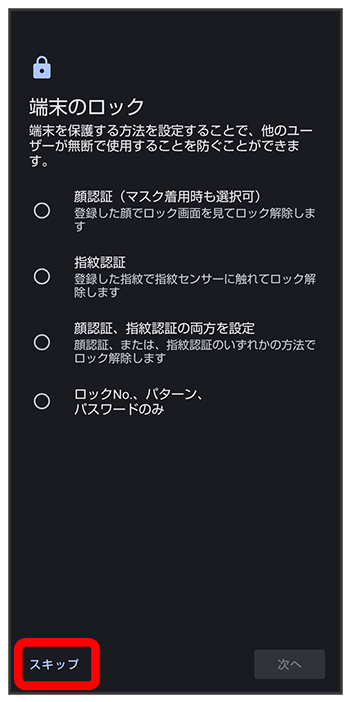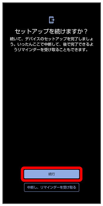 - 初期設定を中断し、あとでリマインダーを受け取るときは、をタップします。