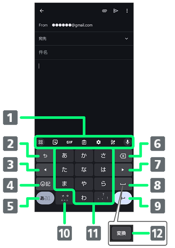 - 表示するアイテムを変更することもできます。詳しくは、「ツールバーについて(Gboard)」を参照してください。
