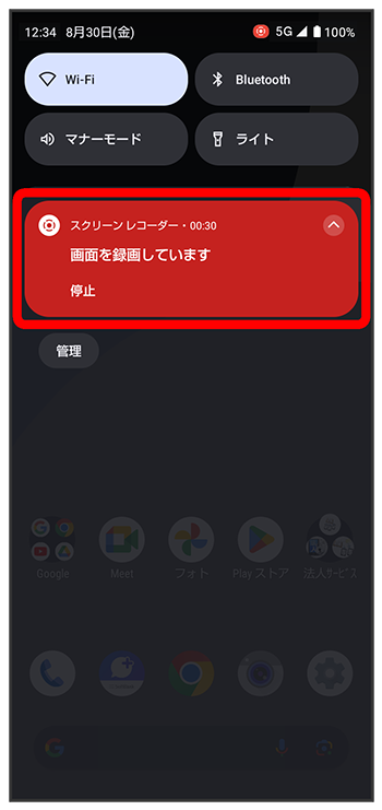 ステータスバーにカウントダウンが表示され、録画を開始します。