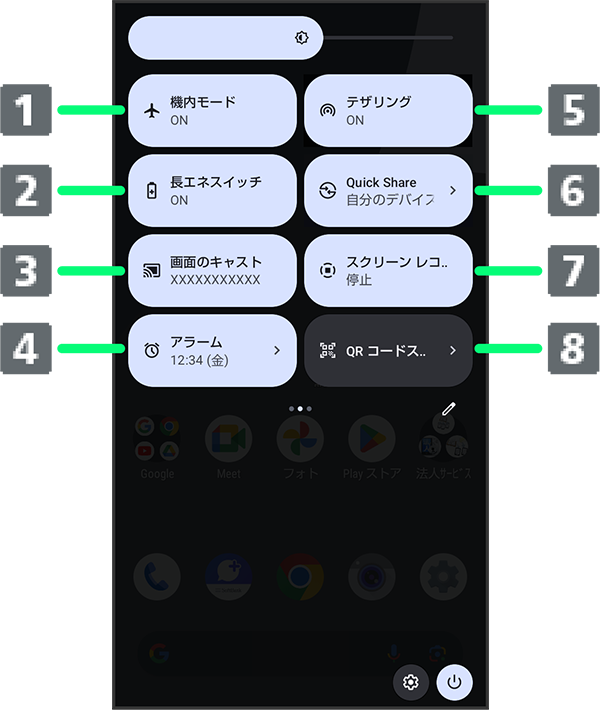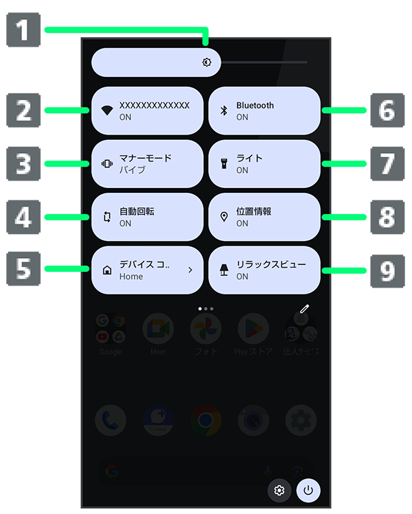 クイック設定パネルの見かた