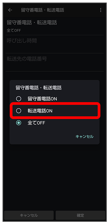 留守番電話・転送電話画面で