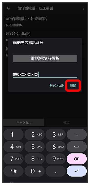 電話番号入力欄をタップ転送先の電話番号を入力