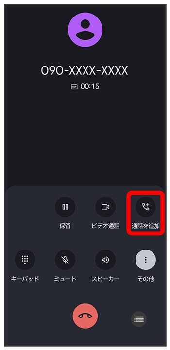 - 候補から通話を追加する連絡先をタップ通話を追加する電話番号をタップしても、通話を追加できます。