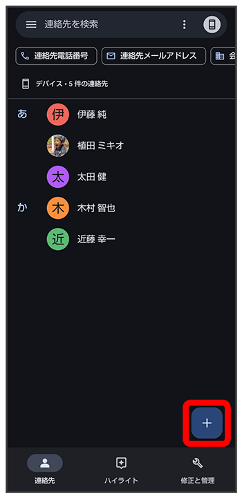 次の操作を行うと、サーバーに保存されたGoogleの連絡先と本機の電話帳を同期できます。Google アカウント以外と同期するときでも、あらかじめ、Google アカウントでログインしておいてください。