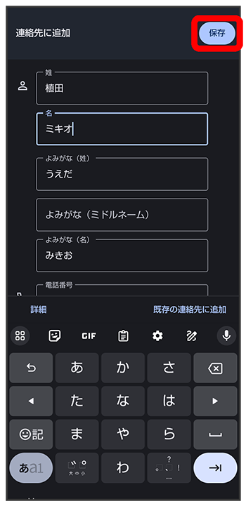 - 追加したい連絡先を入力表示された連絡先をタップと操作すると、既存の連絡先へ追加することができます。