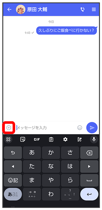 をタップすると画像/動画が添付されたメッセージが送信されます。