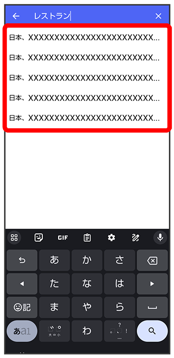 位置情報のキーワードを入力送りたい位置情報をタップ