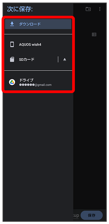- 端末内へ保存したい場合は機種名/ダウンロードを選択します。
