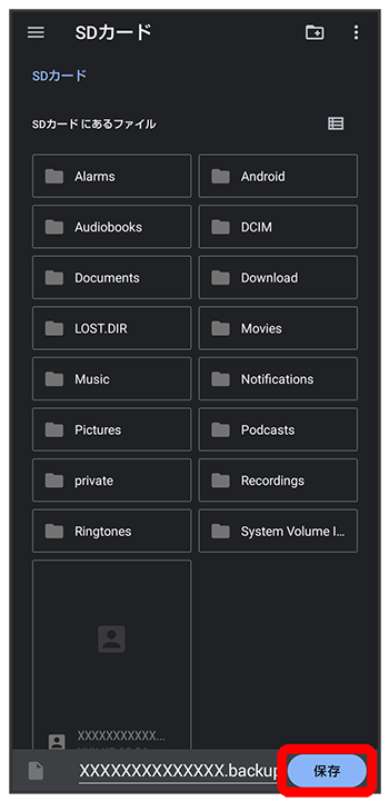 - SDカードはSDカードを挿入している場合、Google ドライブはGoogle アカウントを設定している場合に表示されます。