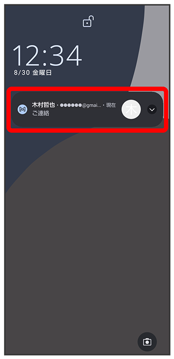 新着メールを受信すると、ロック画面に新着メッセージ通知が表示されます。