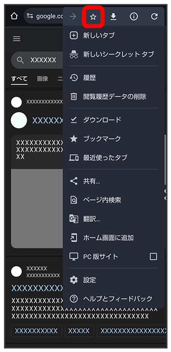 表示中のウェブサイトがブックマークに登録されます。