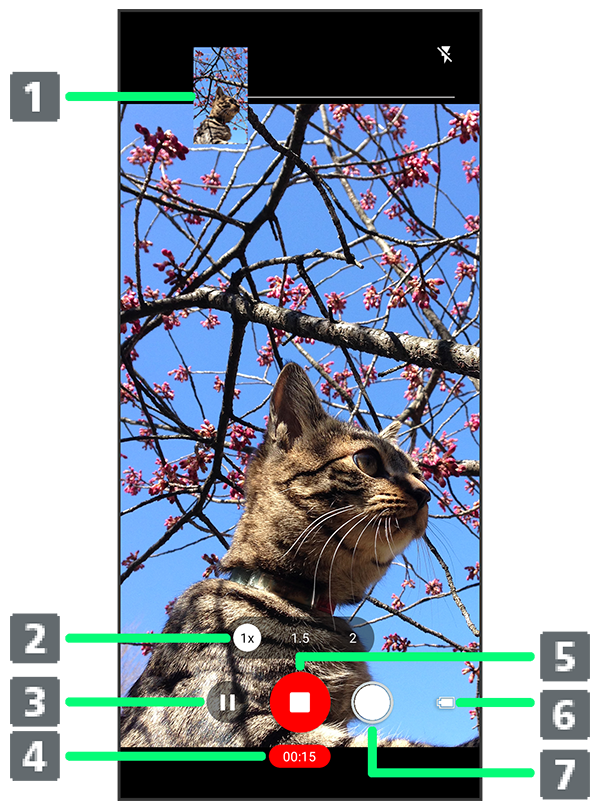 動画撮影中に写真を撮ると表示されます。 - ズーム倍率