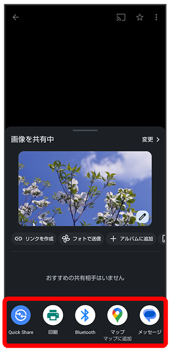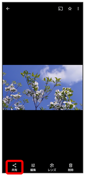 フォト画面で対象の写真/動画をロングタッチ(