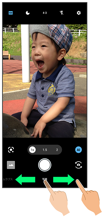 画面下部の撮影モードを左右にドラッグして撮影モードを選択