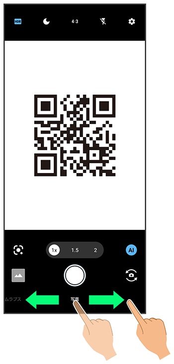 - QRコード(バーコード)が小さくて検出できないときは、ピンチアウトして拡大してください。