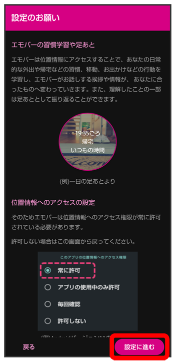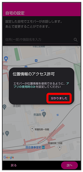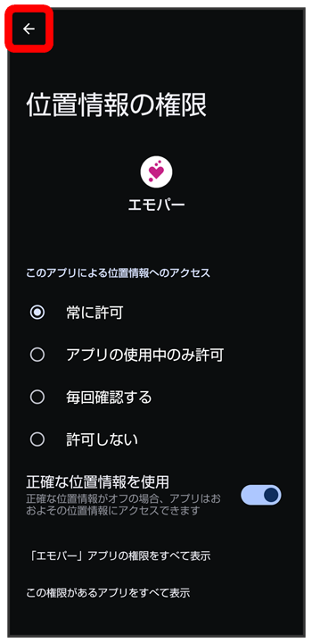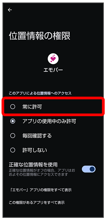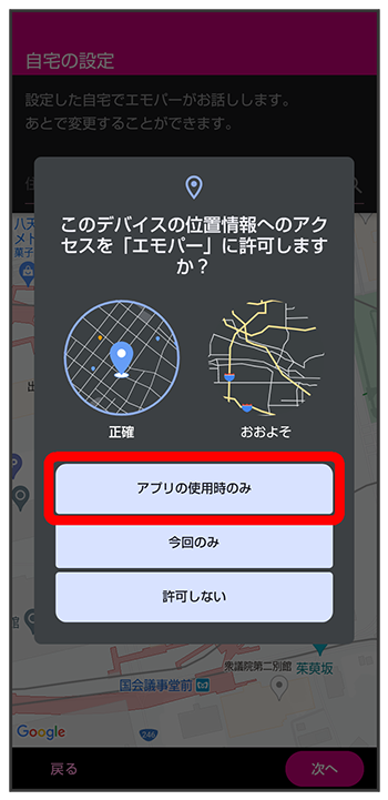 - 正確な位置情報の利用を許可するときはを、おおよその位置情報の利用を許可するときはを選択してください。
