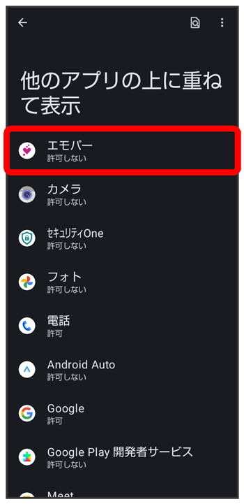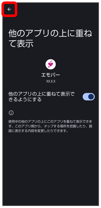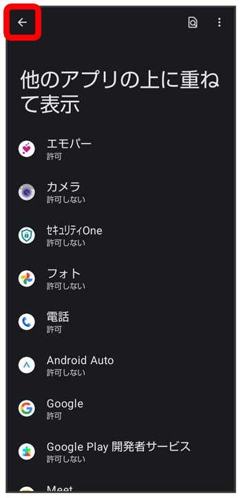 - 通知機能の場合は、アプリ名をタップしたあと、をタップするたびに、許可(