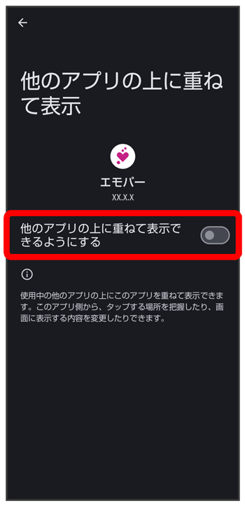 )が切り替わります。 - アプリによっては、設定できないことがあります。