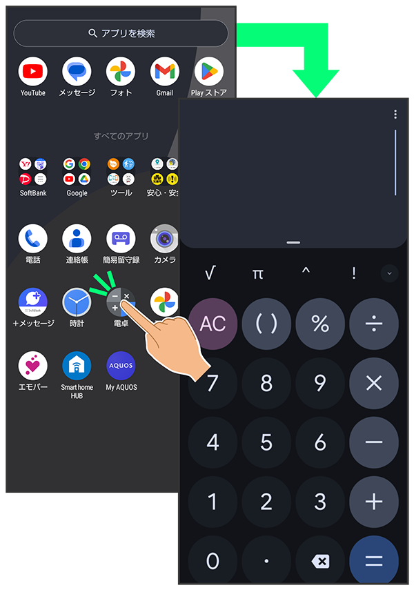 アプリをロングタッチすると、アプリにより機能へのショートカットが表示される場合があります。機能ショートカットをタップすると、その機能を直接起動できます。