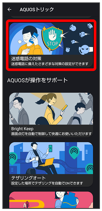 迷惑電話の対策設定画面が表示されます。
